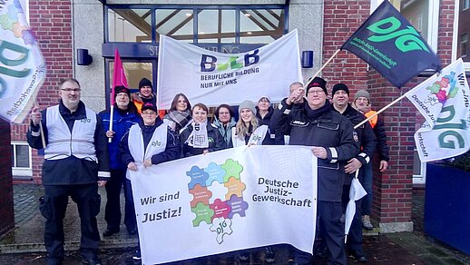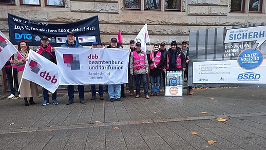 Die Kolleginnen und Kollegen unserer Fachgewerkschaften DJG, BLB, DPolG und der dbb landesbund bremen zeigten auch in Bremerhaven Flagge. Der Unmut über die derzeitgen Tarifverhandlungen wächst.
